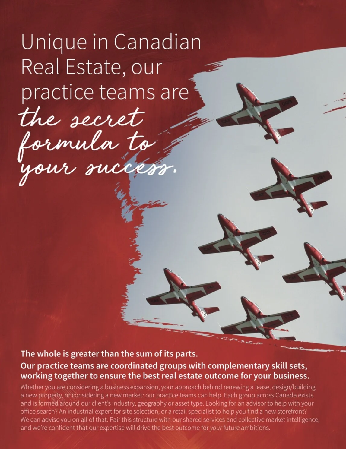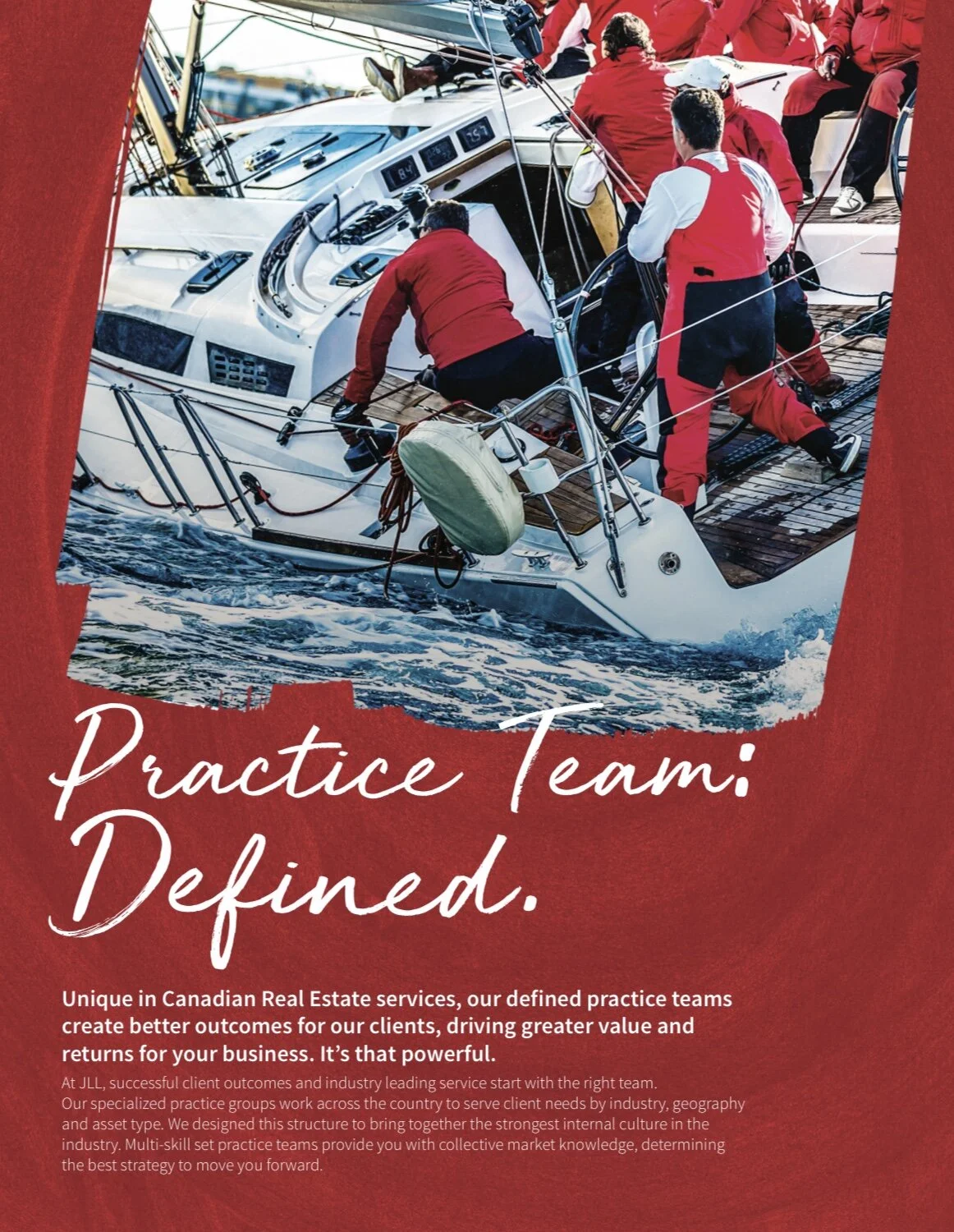 Achieve Ambitious and a new brand identity for JLL globally meant an opportunity to create Canadian-centric tools for JLL in Canada. The team at The Creative Collective worked in partnership with this firm to develop and design a brand series that focused on the brokerage’s strength of practice groups, and specialized real estate expertise across the country.
